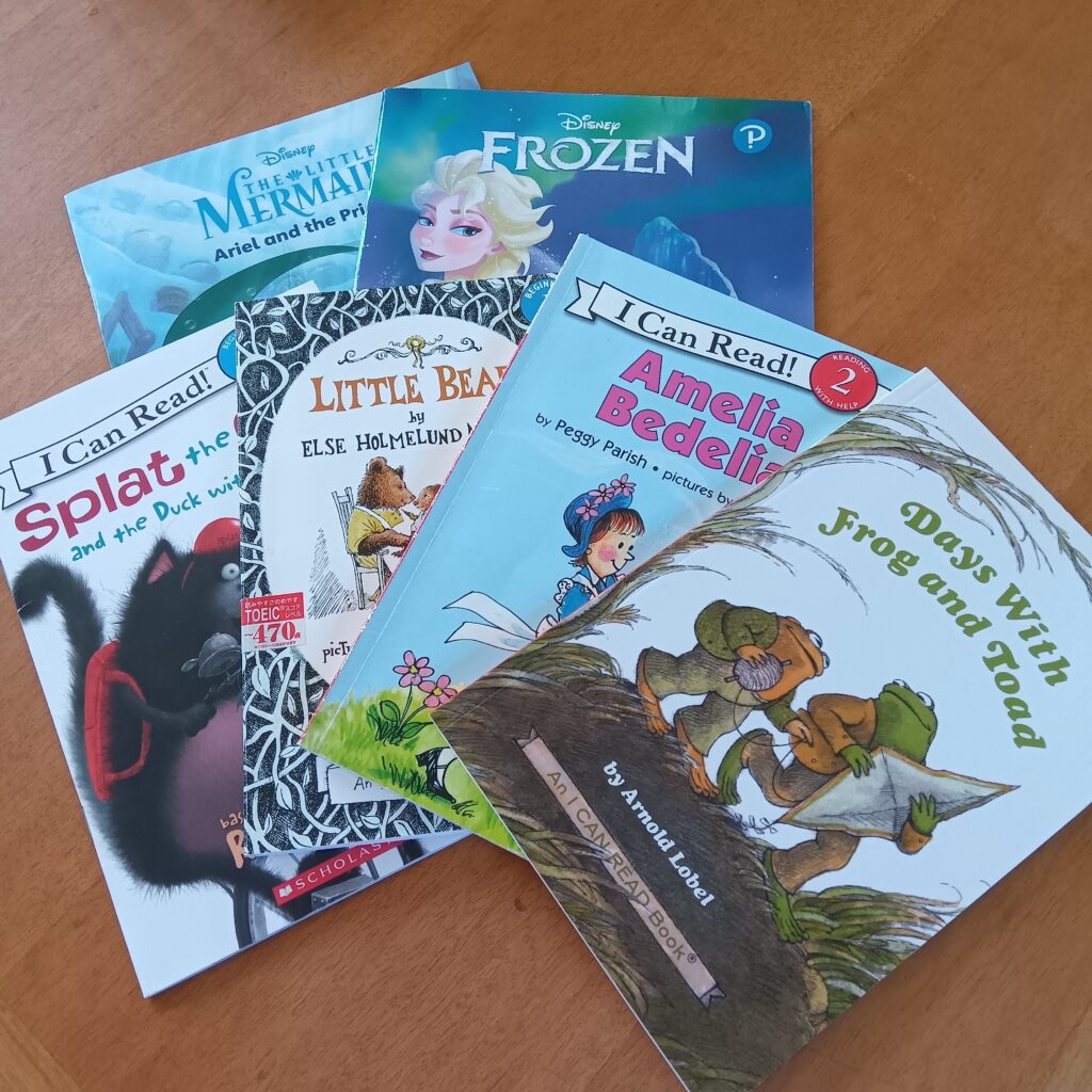 更なるフォニックスの定着を図り、洋書を使用した「音読」を中心に、英語を「書く」「読む」の強化を行います。洋書は、国語の教科書でもおなじみの「がまくんとかえるくん」シリーズ、人気映画の「アナと雪の女王」「ライオンキング」などを今までに使用しました。また、中学英語の準備として、文法も生徒の進度に合せて少しずつ学習していきます。