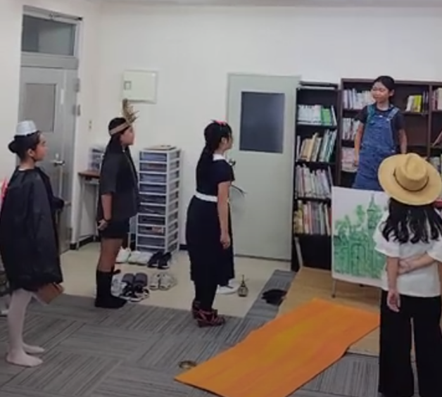 小学生のうちは、何よりも音読が肝だと思っています。声に出して読むのならば、楽しい方が良い、また繰り返し覚えるまで練習をするモチベーションをキープするためには、発表の場があったほうが良いと考え、英語劇に至りました!今までに、「おおきなかぶ」「赤ずきん」「ねずみの嫁入り」「ねむり姫」「みにくいあひるの子」「金の斧、銀の斧」「オズの魔法使い」などに挑戦しました。セリフに抑揚をつけて、役になりきって感情を込めて発話していくことで、よりことばの定着が高まっていきます。また、台本にカナをふらずに英文を読むことを目指すべく、当塾では、フォニックスを繰り返し丁寧に学習します。